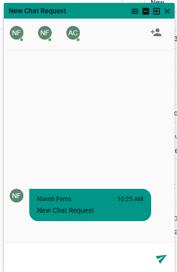 When you click Join on the chat request notification, a chat window will pop up at the bottom of the screen. From here, you will be able to chat with your customer: